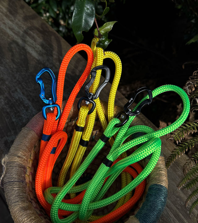 Our rope leads are a different story: every single one is handcrafted by us using traditional rope splicing techniques from the sailing industry, giving you a lead that's lightweight, incredibly strong, and built to last.